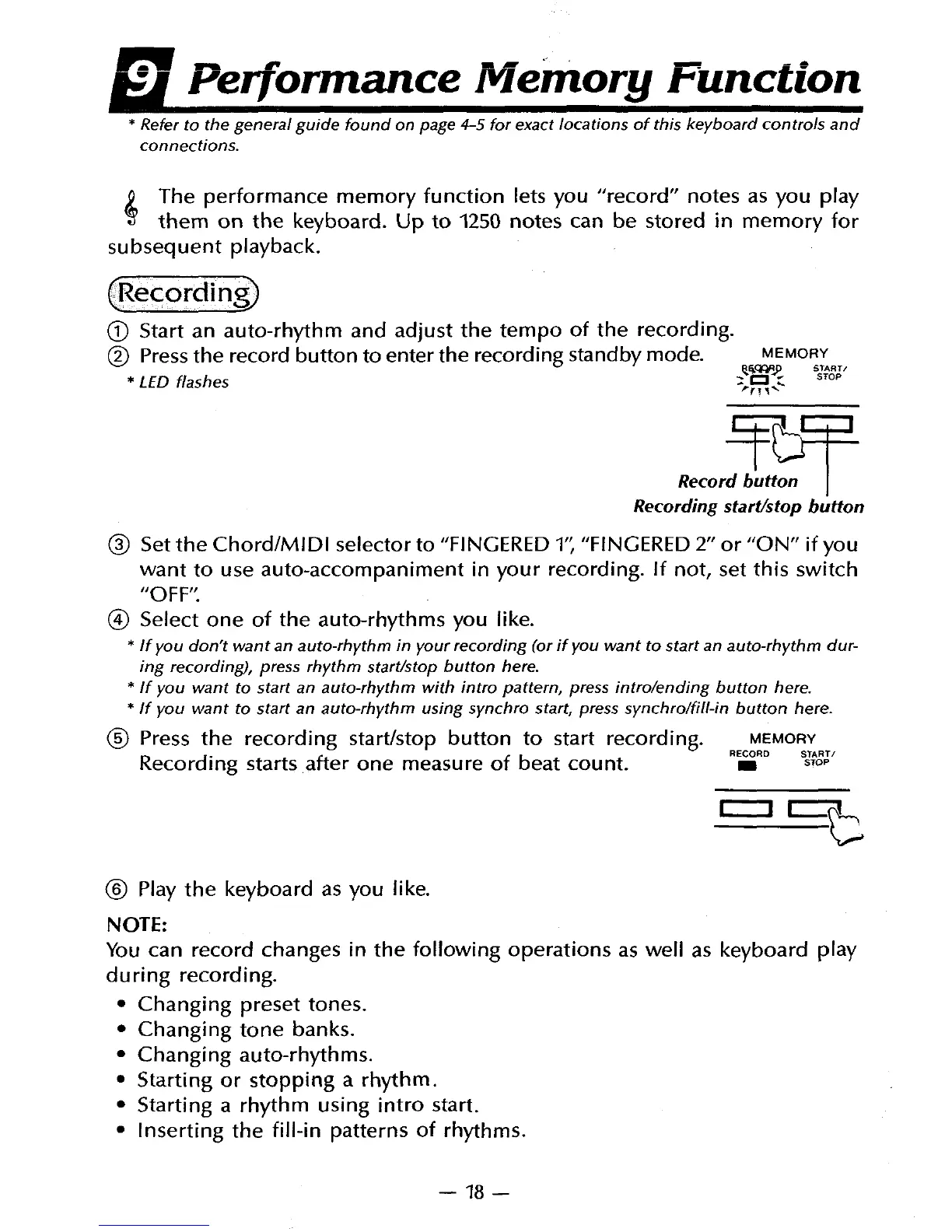 Casio Tone Bank CT-650 - Casio CT-650 Performance Memory Function; Recording Keyboard Performances
