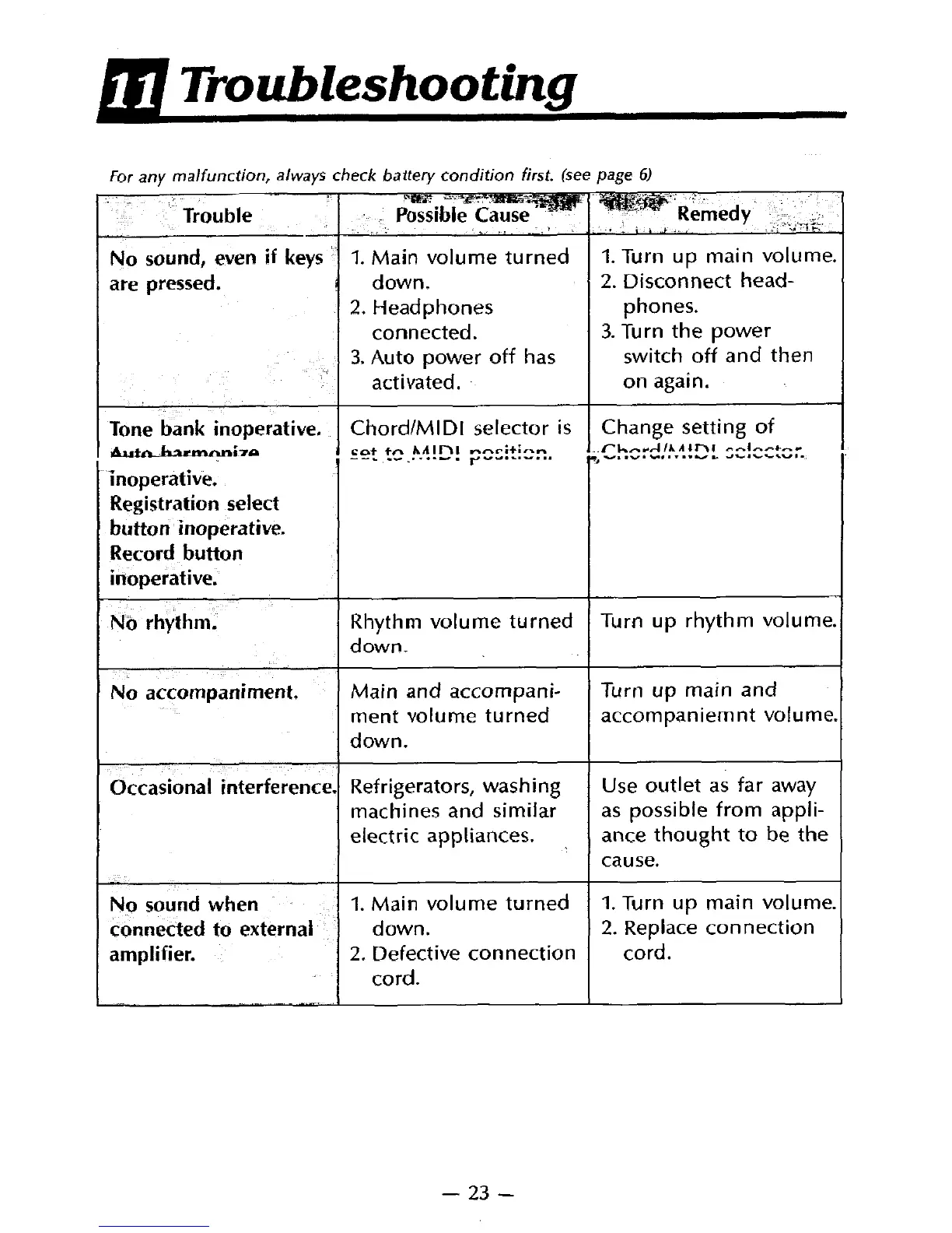 Casio Tone Bank CT-650 - Casio CT-650 Troubleshooting; Common Problems and Solutions