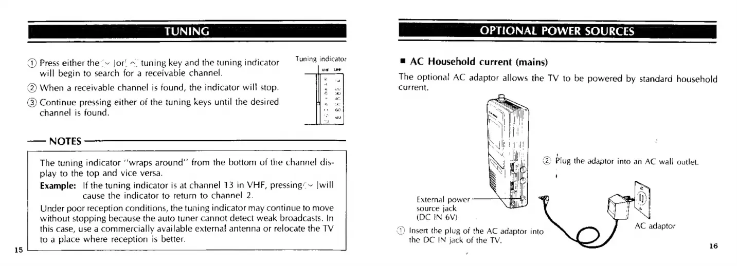 Casio TV-400 - Optional Power Sources