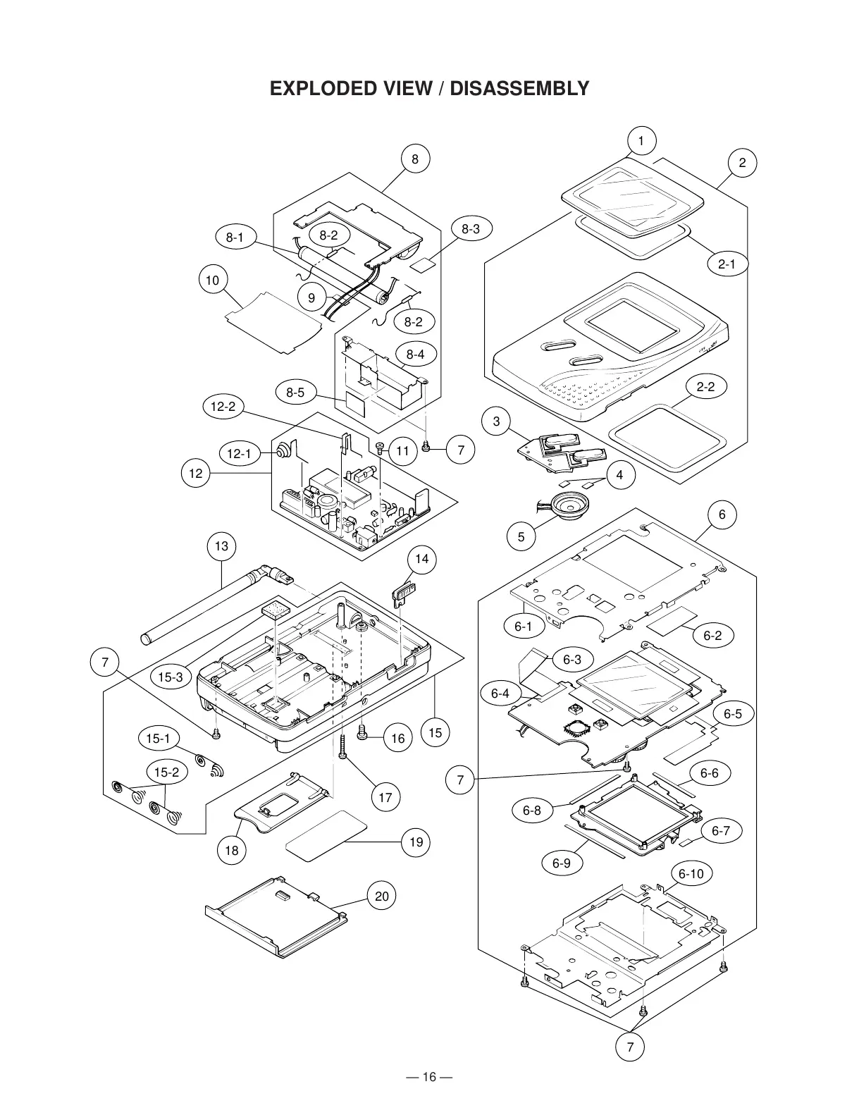 Casio TV-600B - EXPLODED VIEW; DISASSEMBLY