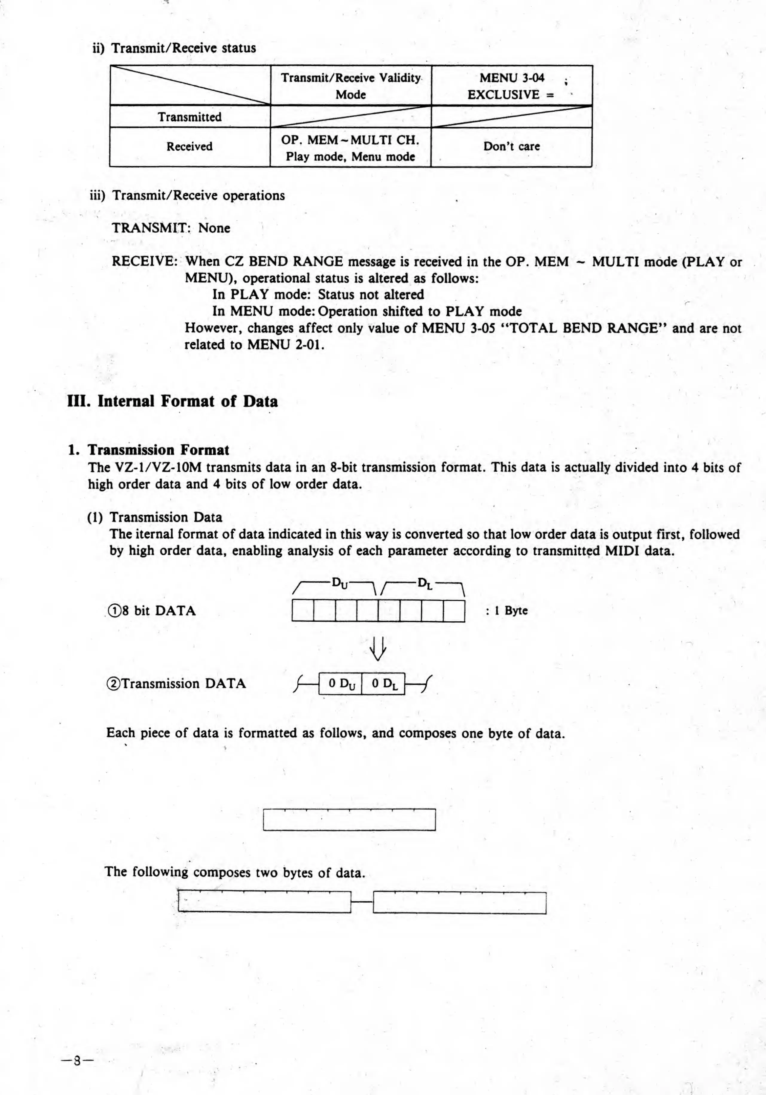 Casio VZ-1 - Internal Data Format: Transmission and Tone Details; Transmission Format