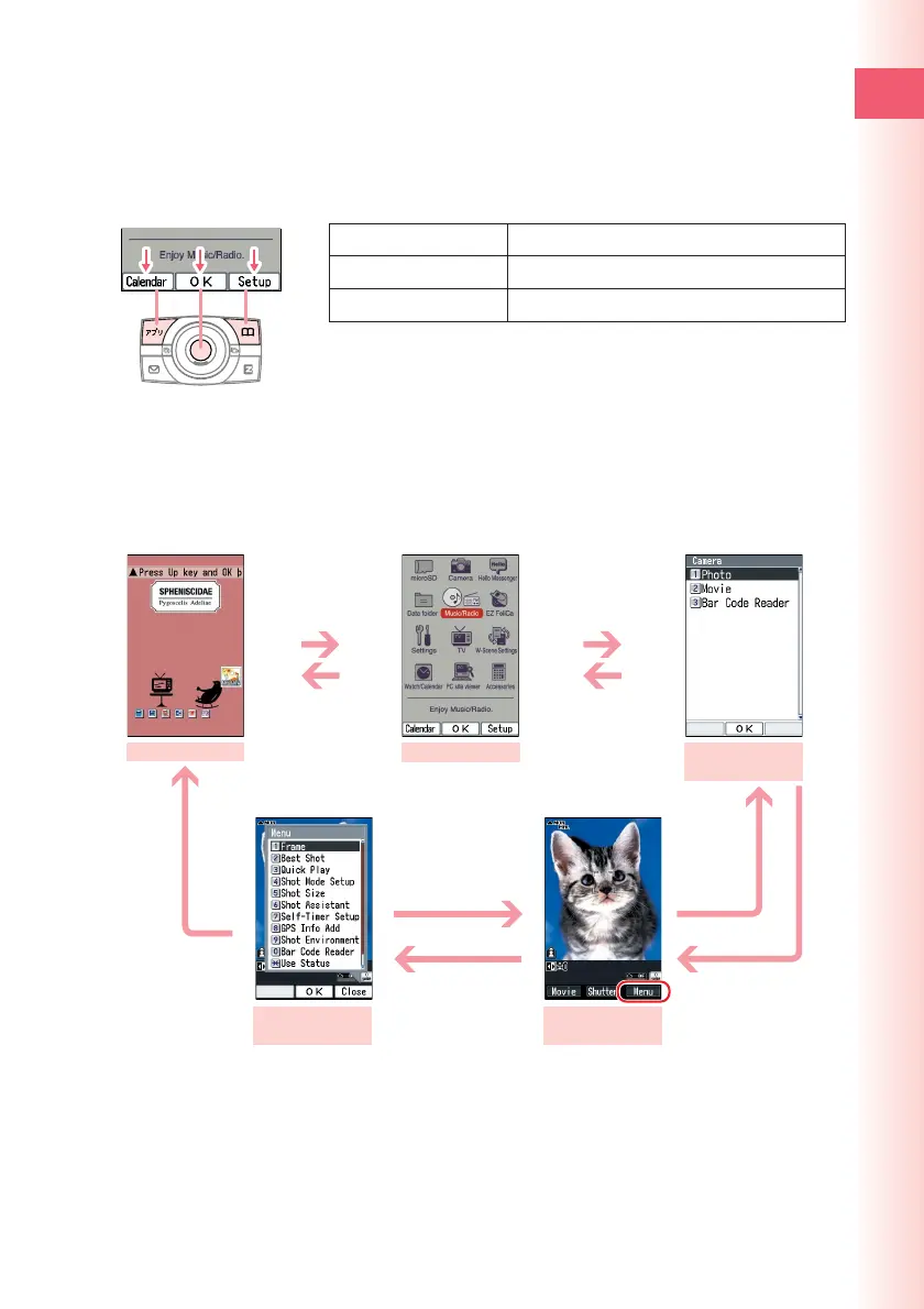 Example: To open the photo monitor menu screen from photo monitor screen.