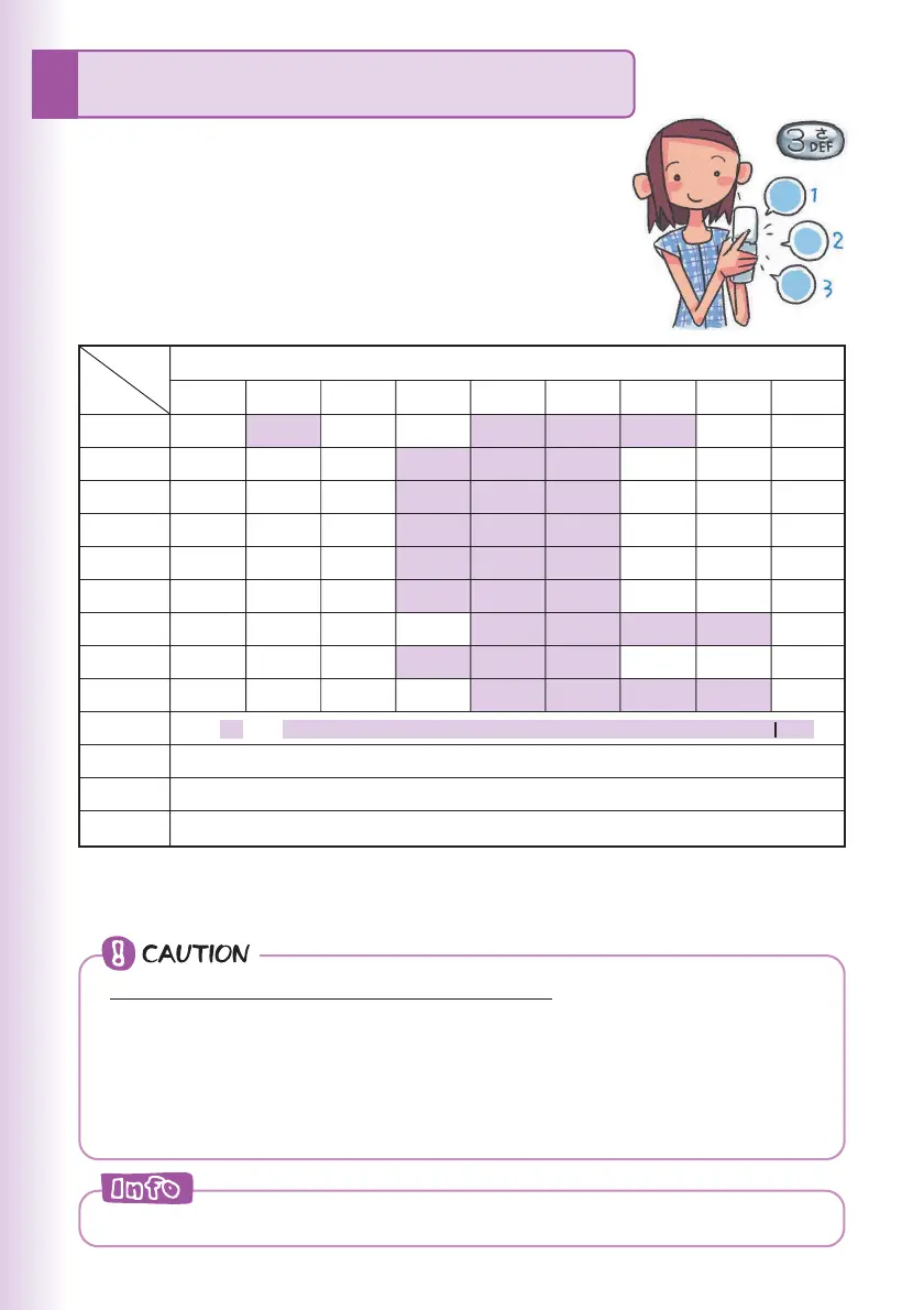 •In order to input consecutive characters that are assigned to the same key, press r to