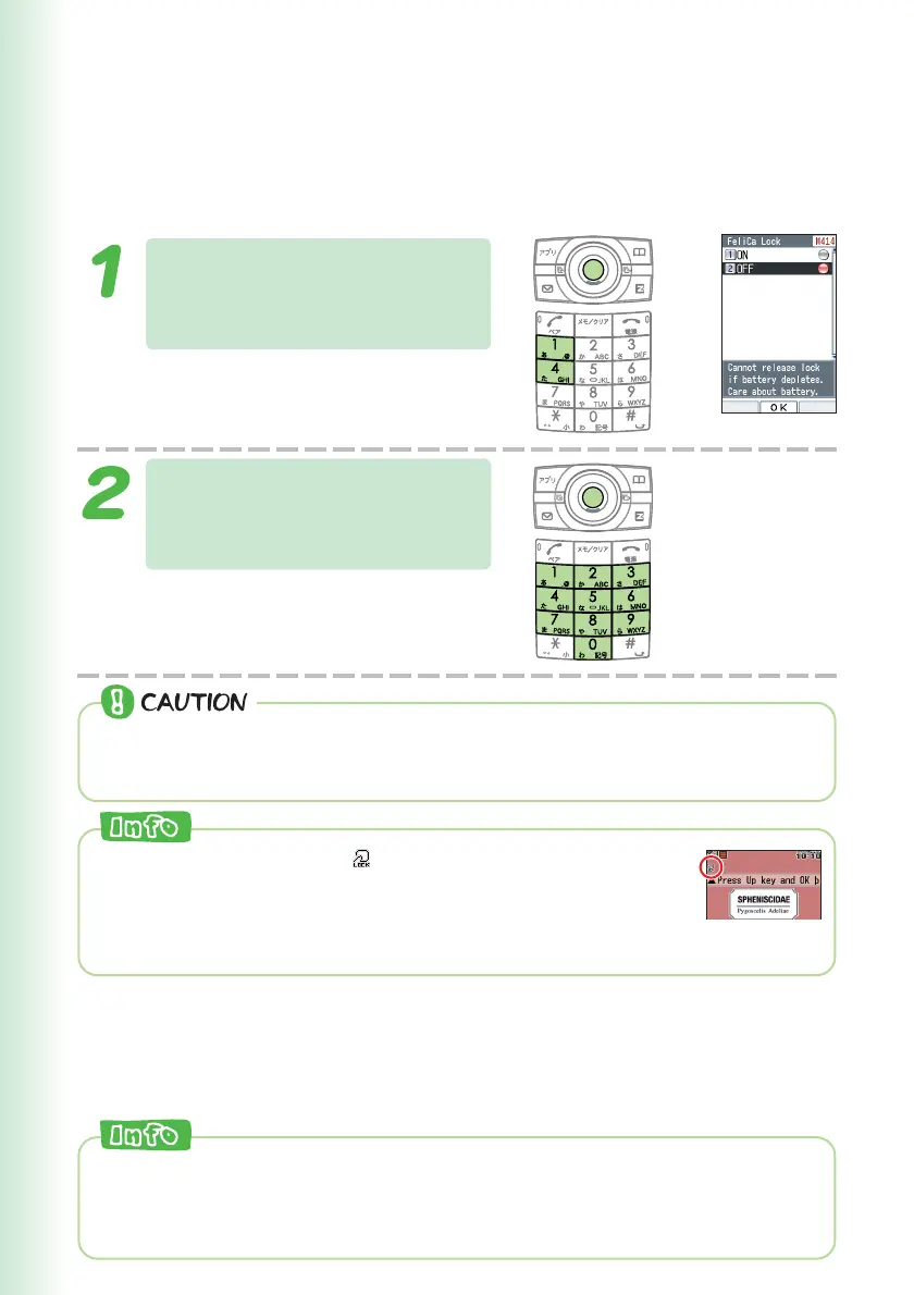 the FeliCa Lock. Be careful of the battery level. When your battery is discharged,