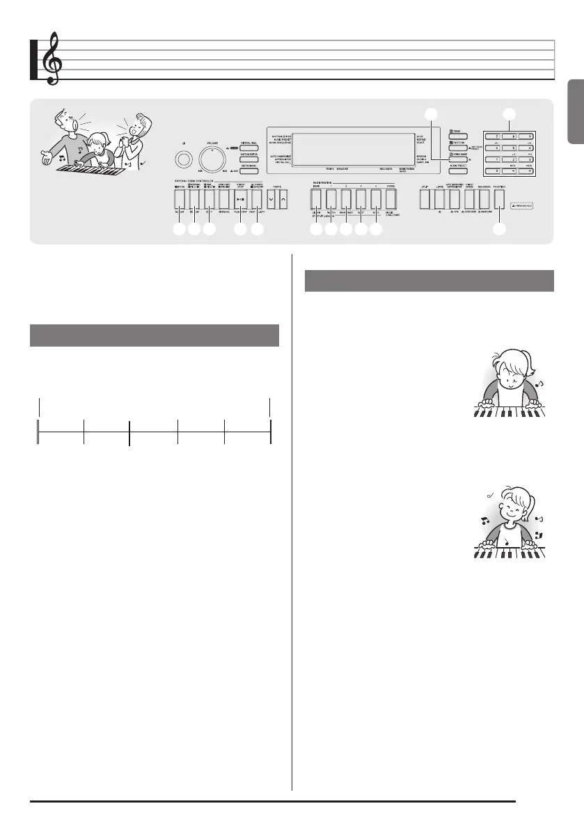 The built-in songs are pre-divided into phrases to help you