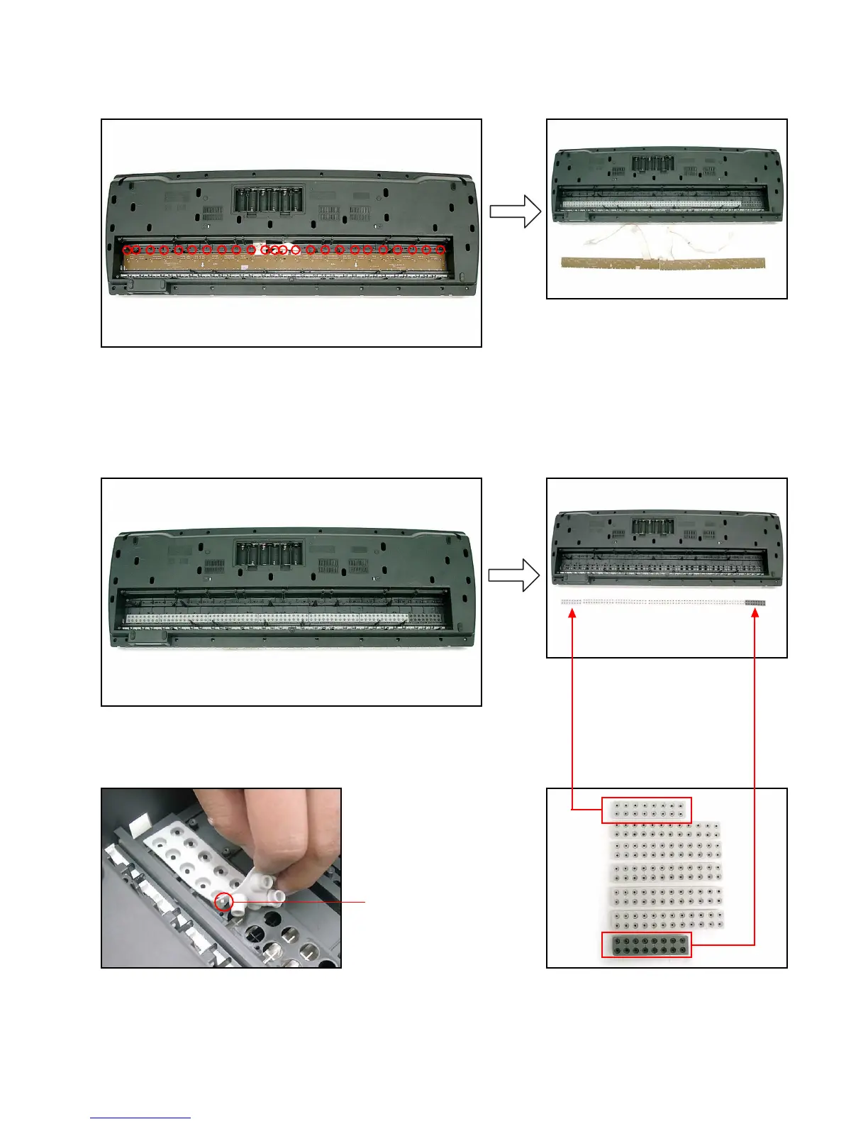 9. Remove 24 screws and then the PCB ASSY (KY1M, KY2M).