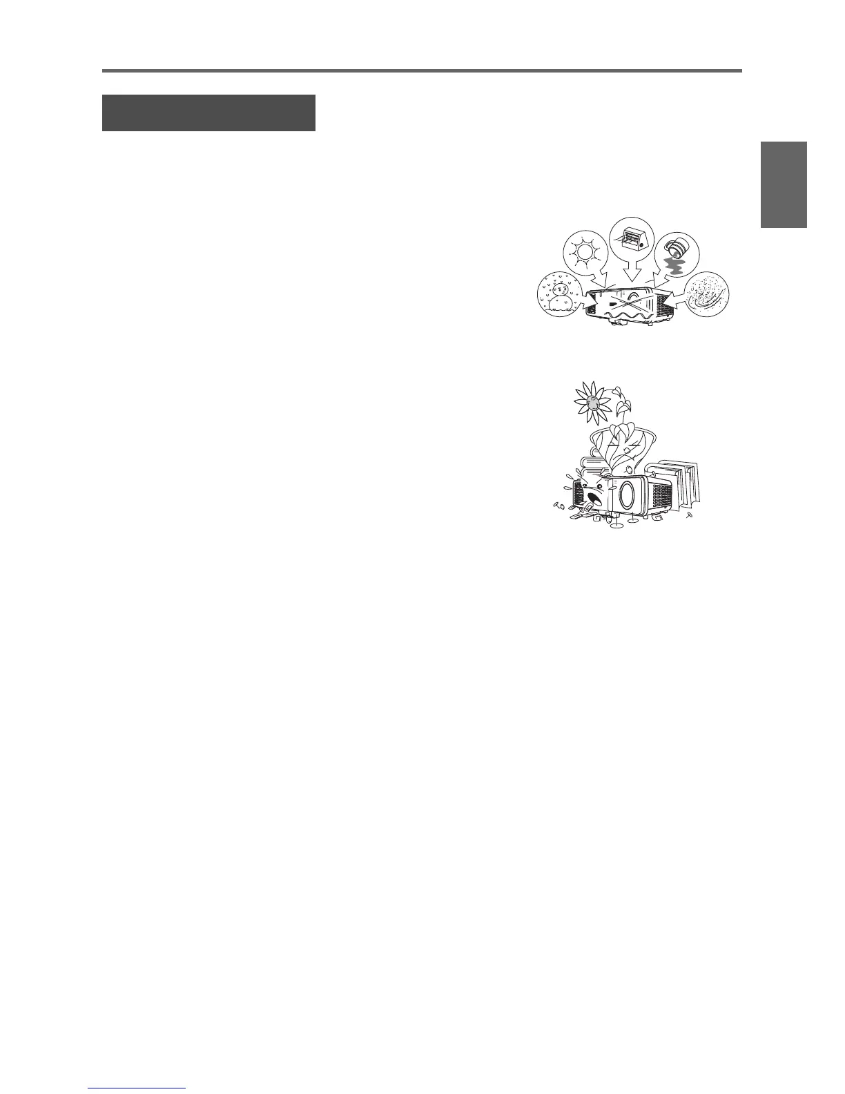 ● Avoid using the projector under the following conditions. Such conditions create