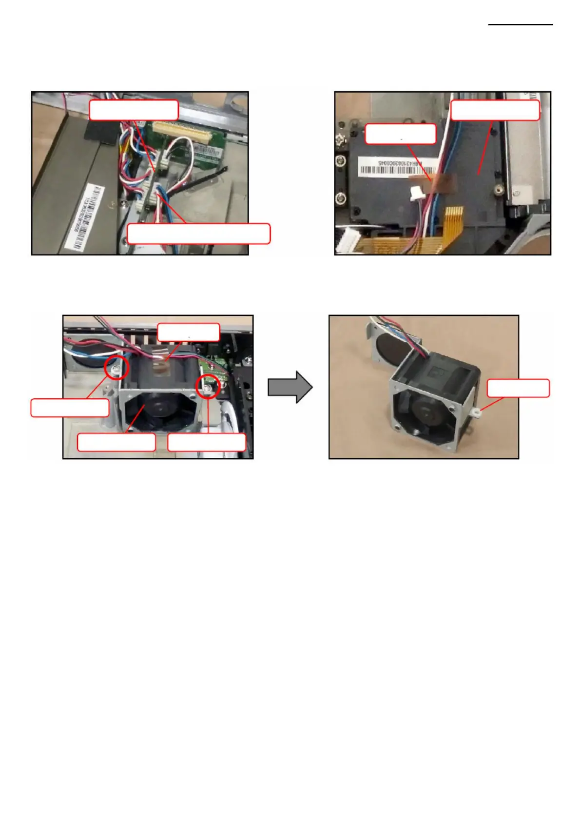connector (FAN MODULE B) connected to the PWB-3 board. K-2. Remove the tape securing the fan module B cables.