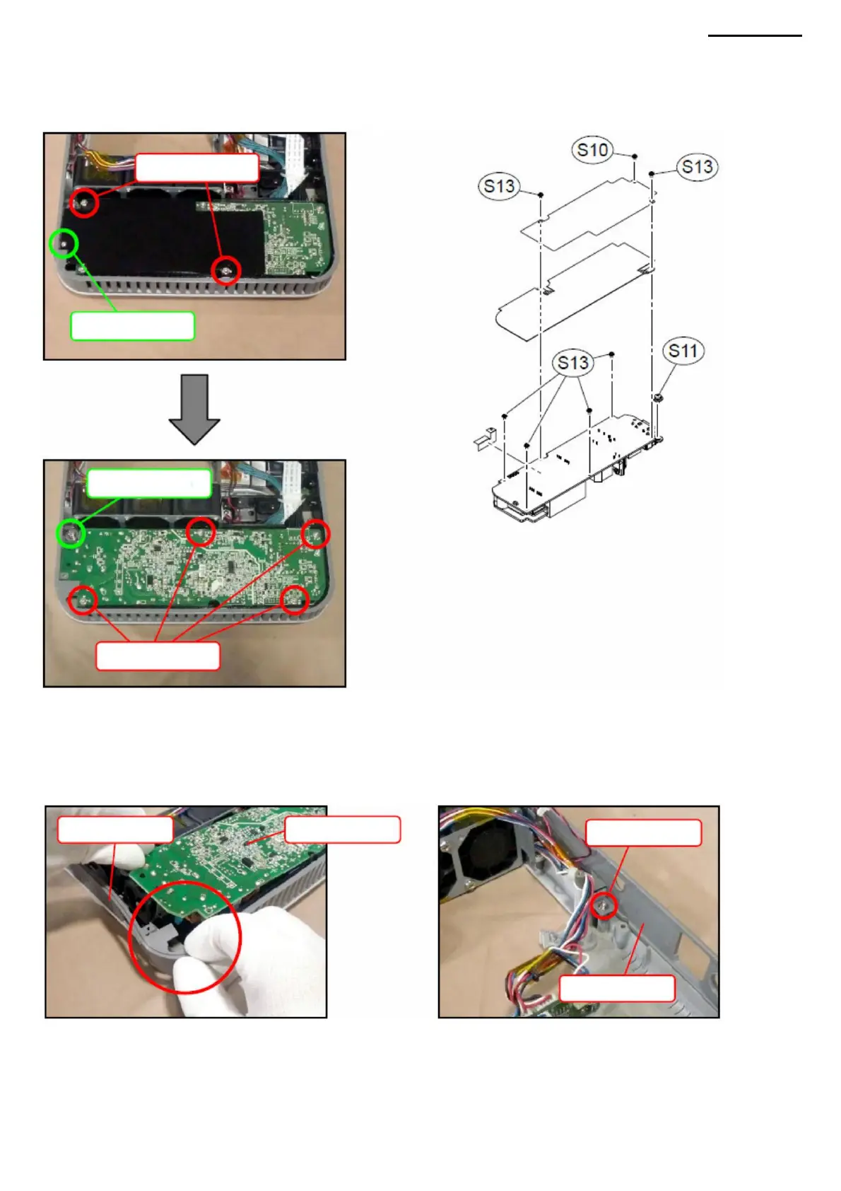 N-1. Unscrew the three screws (S10, S13) and remove the two insulating plates.