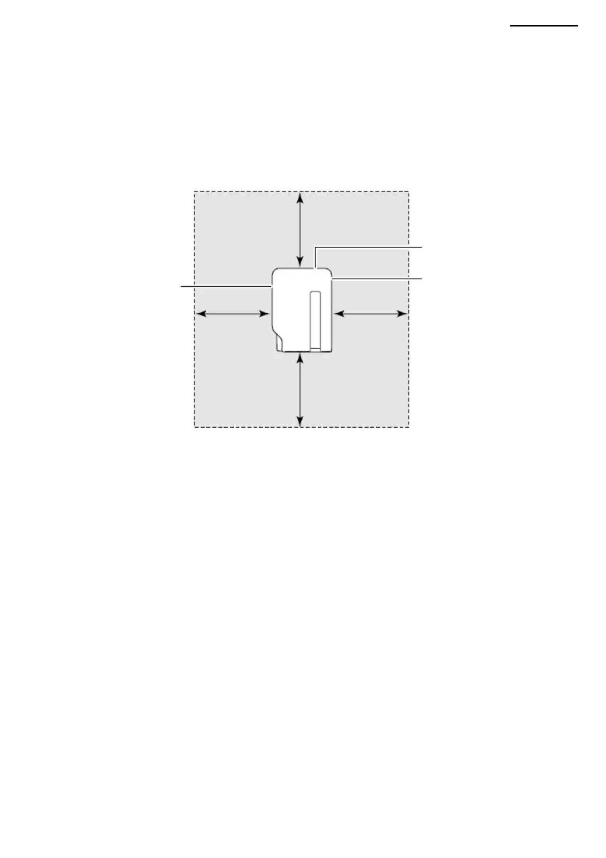 • Do not place any objects in the area marked with a dotted line in the following figure. Do not place any objects within 30