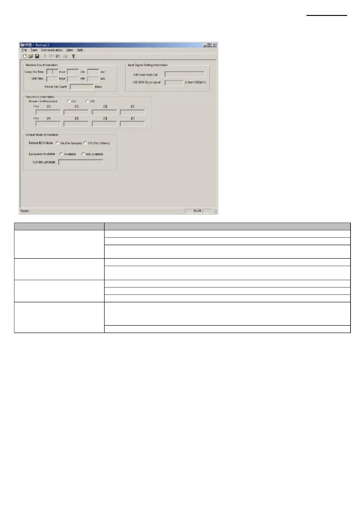 Lamp On Time window Unit Time window Power On