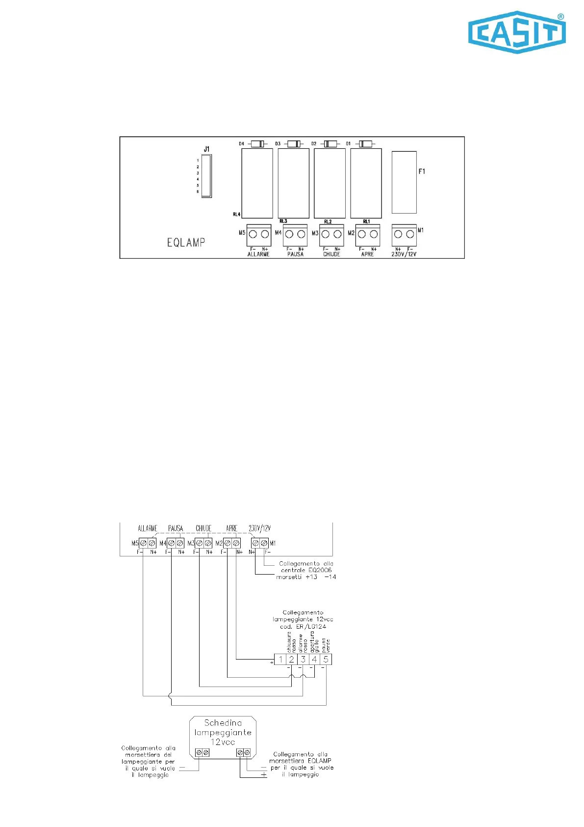 The card of management flashing LAMP has to be connected to the control panel EQ2009 through the insertion of the 6 poles cable