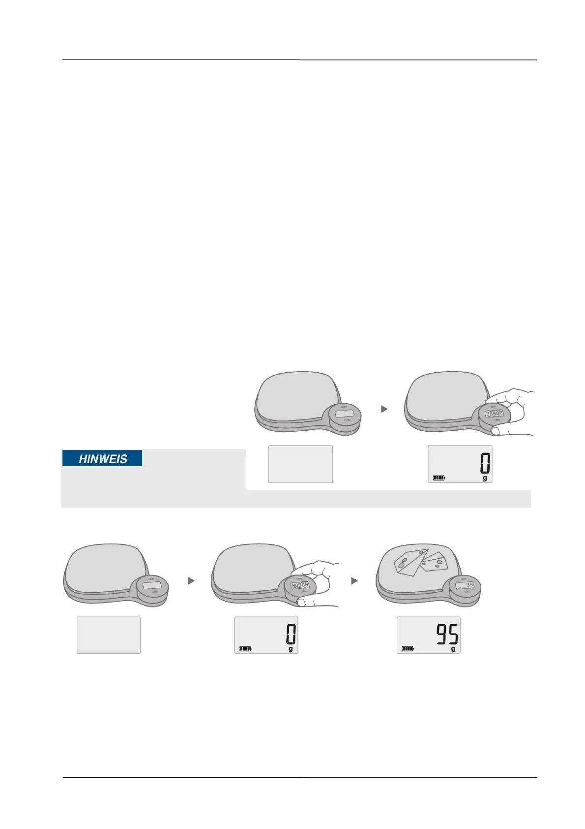 Place the food on the scale surface and the weight of the food will appear on the display.
