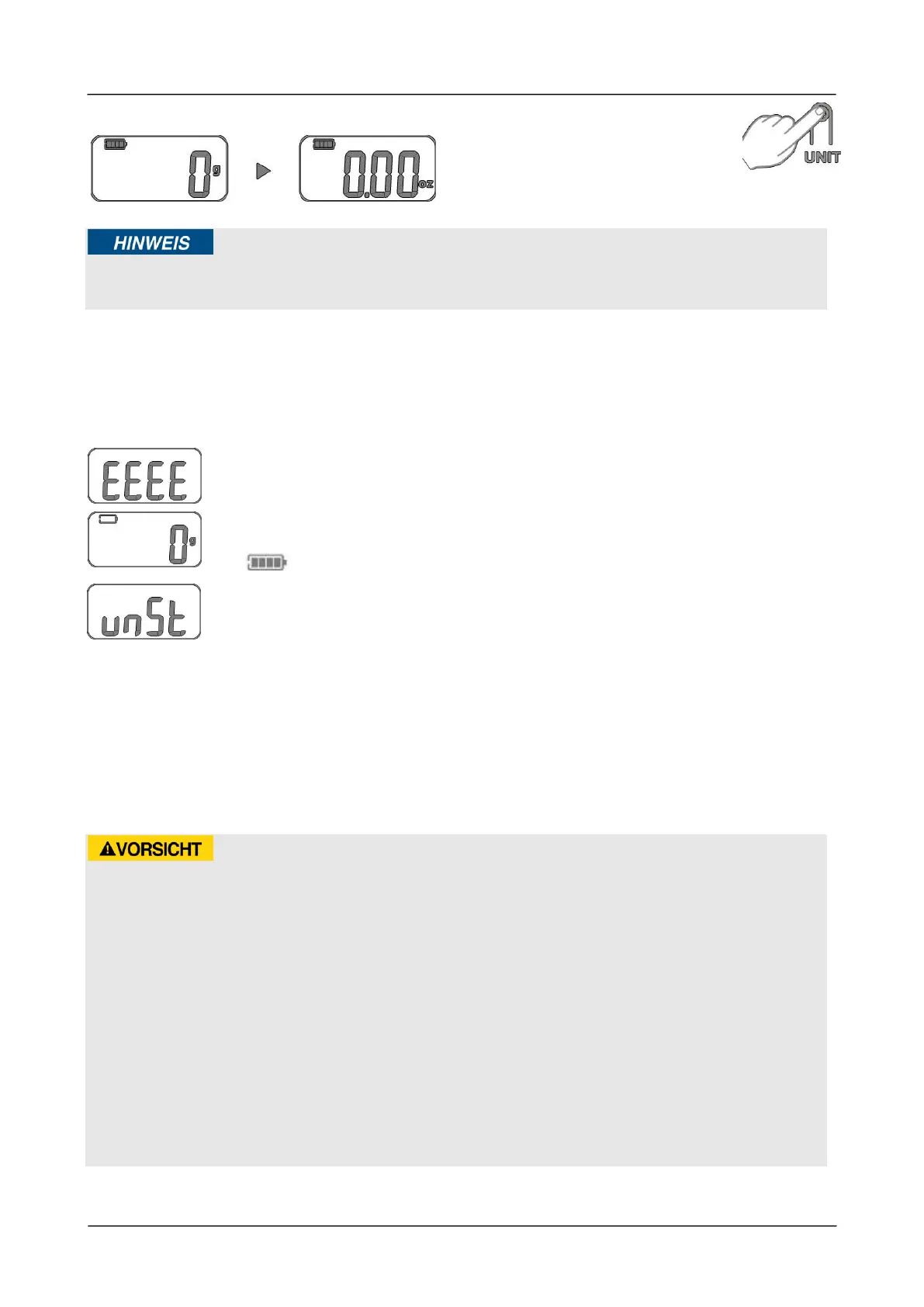 ► Wählen Sie vor dem Wiegevorgang die Einheit aus. Es ist nicht möglich während des