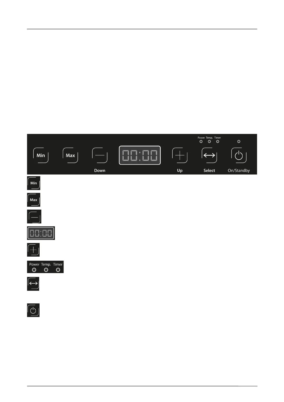 Select zur Auswahl der Funktion: Stufe (Power), Temperatur (Temp)