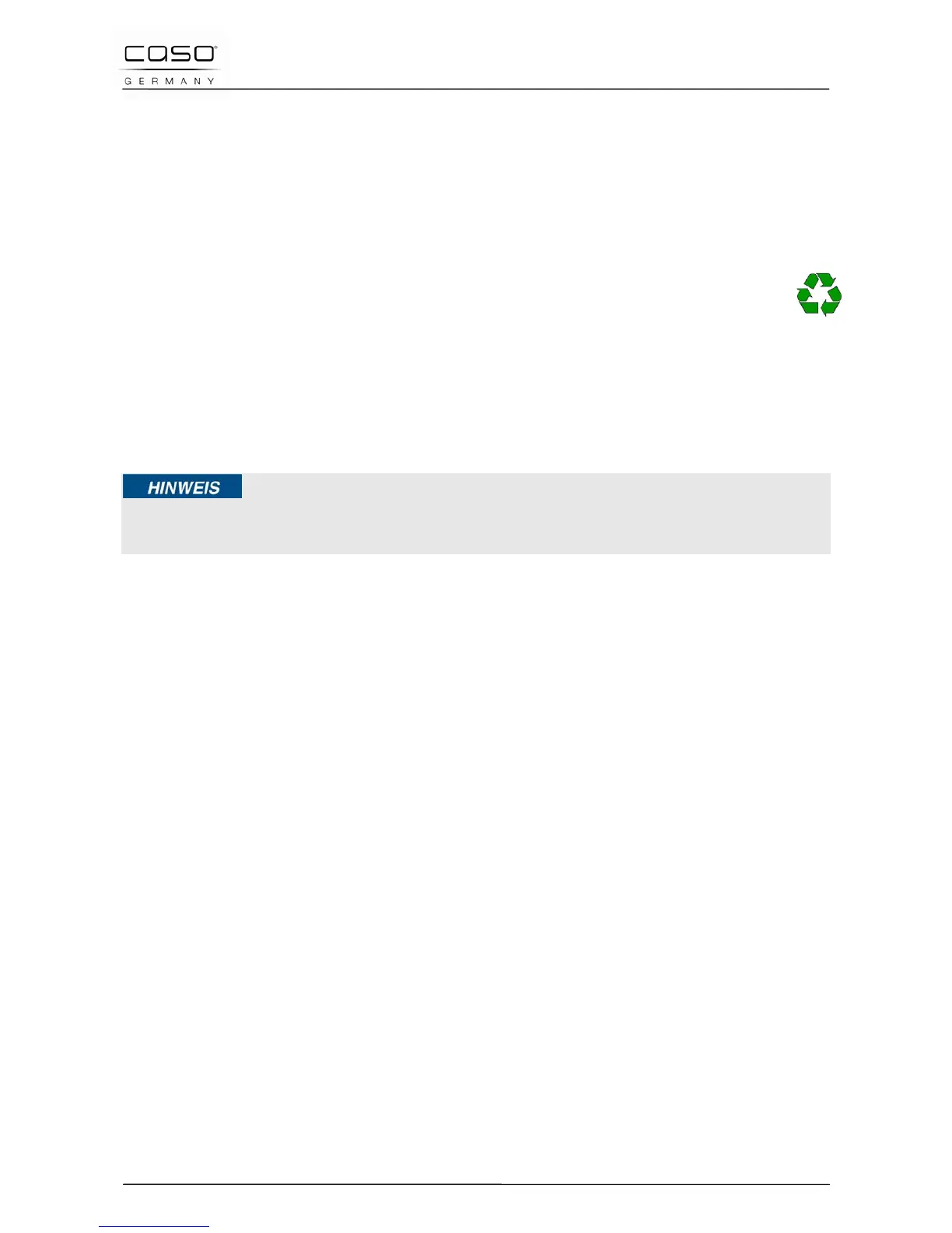 ► Heben Sie wenn möglich die Originalverpackung während der Garantiezeit des Gerätes