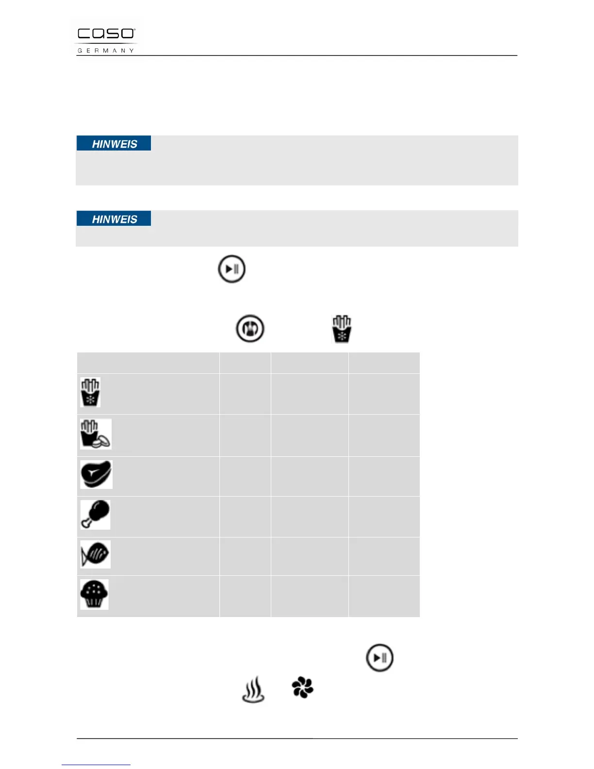 7. Frittura rapida: premere e l'apparecchio si avvia subito (temperatura: 180°C,