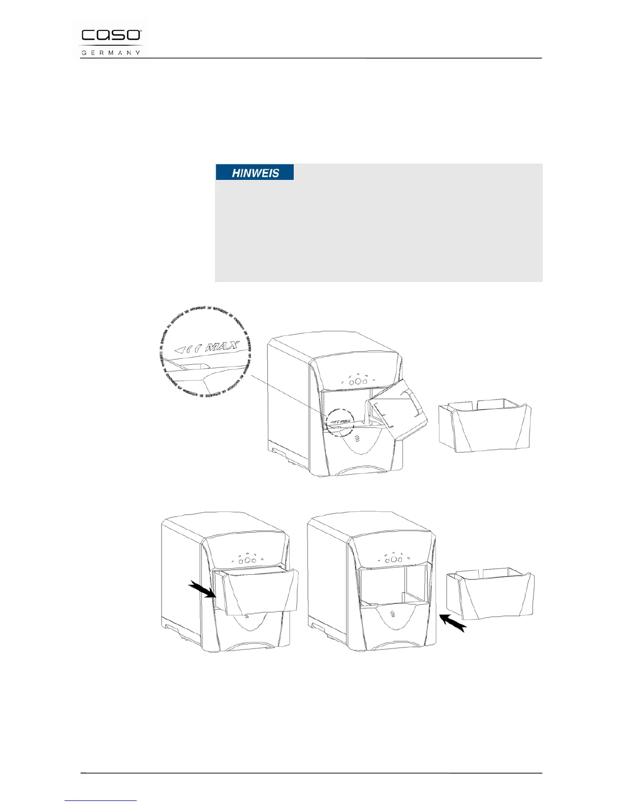 ► Füllen Sie nicht mehr Wasser, als bis zur Markierung „max“