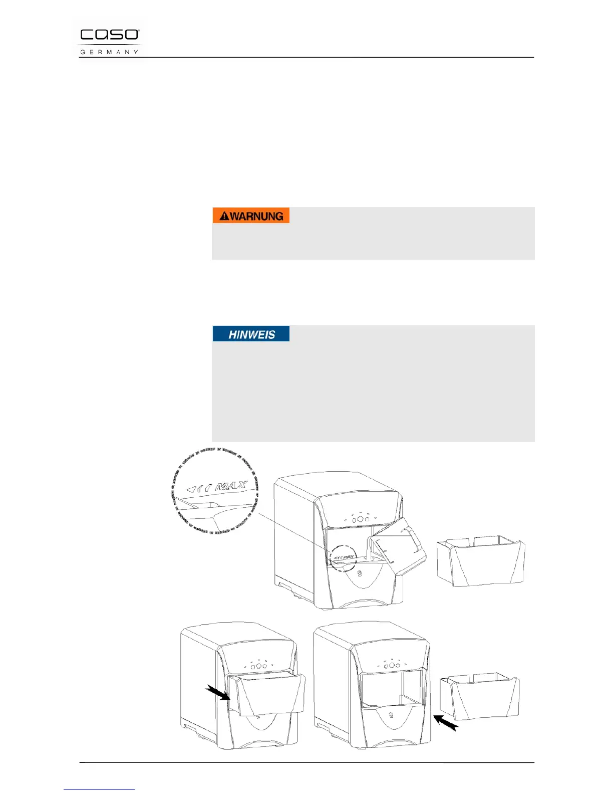 ► The water level can not be higher than the marked max.