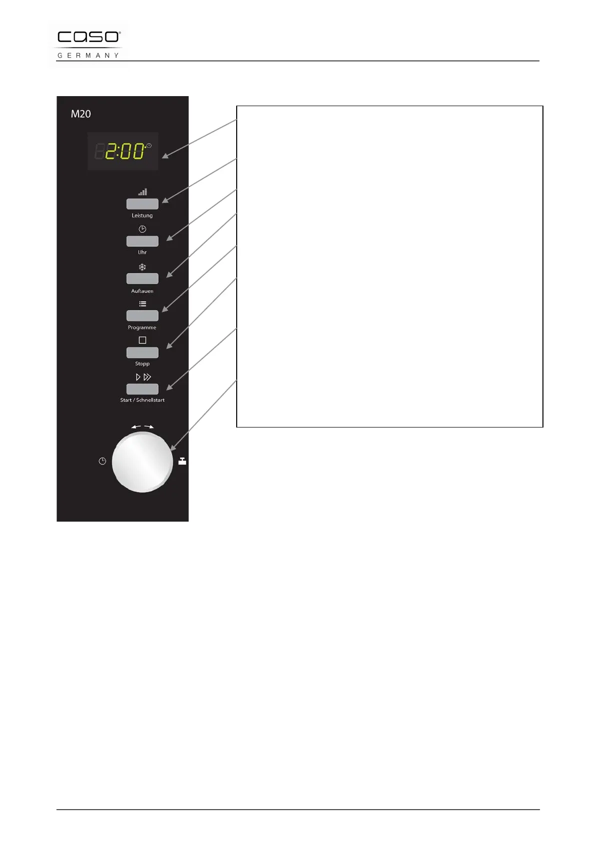Anzeigenfeld: Garzeit, Leistung, Funktionsanzeige