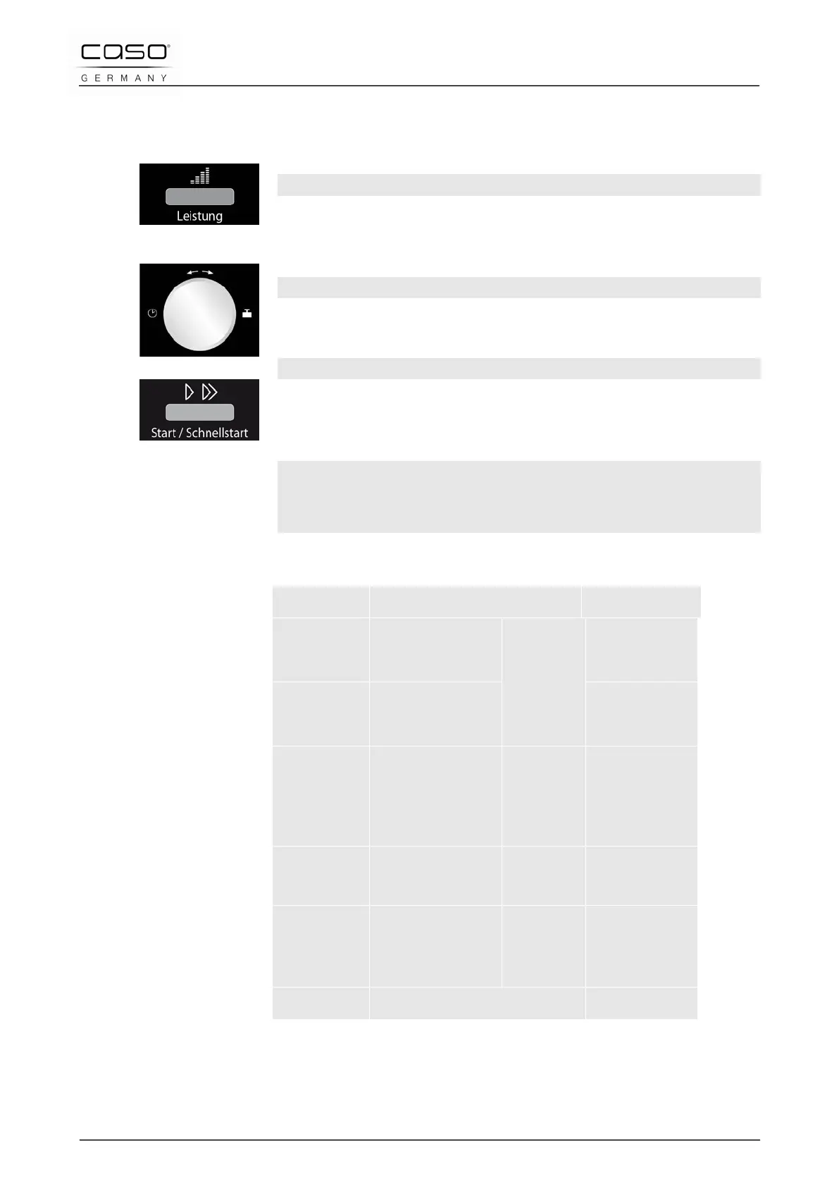 Taste Leistung entsprechend oft drücken (siehe Tabelle