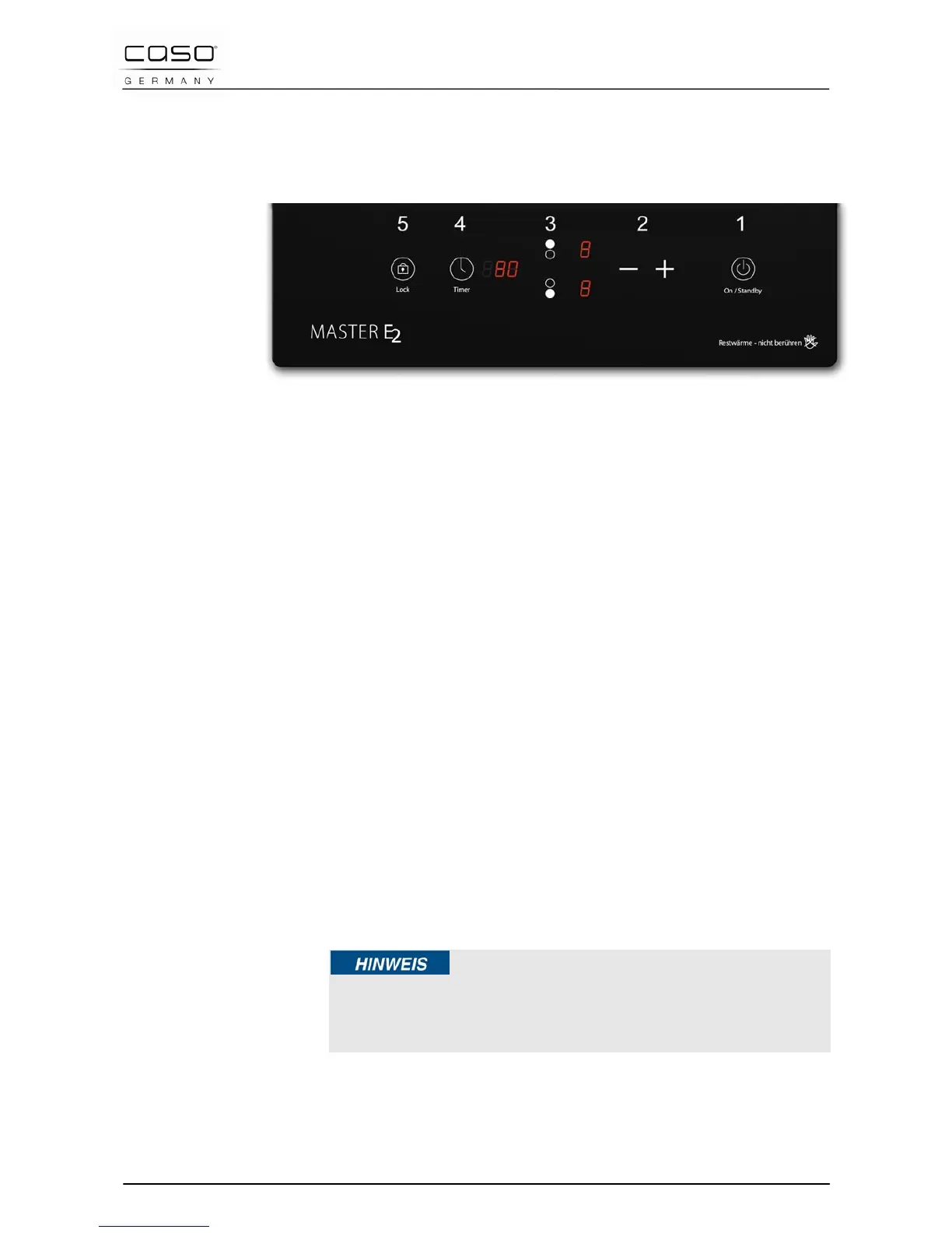 2. . +/--toetsen om de kookstand / timer in te stellen