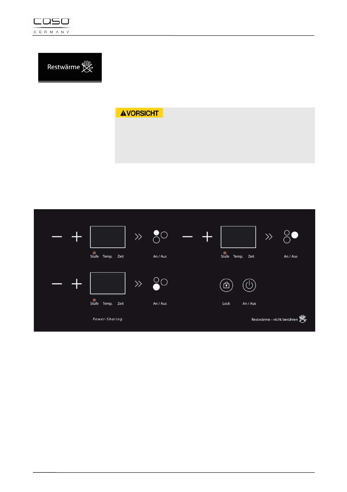 Dieser Hinweis dient zur Warnung, dass das Keramikfeld heiß