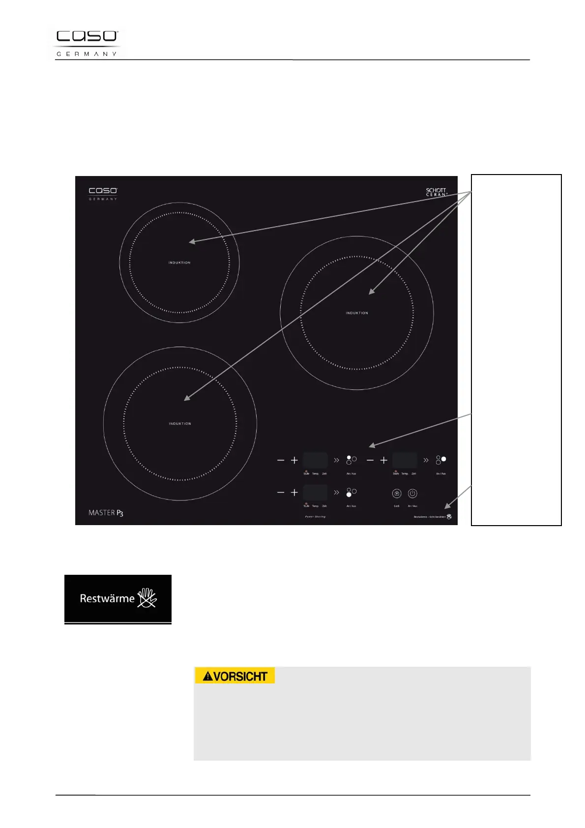 ► Do not touch the surface of the ceramic hob while it is still