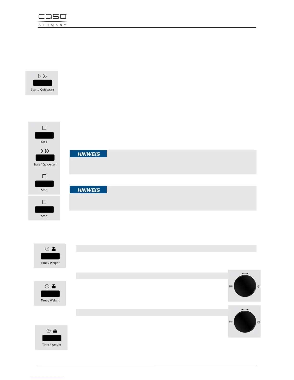 Tryk på Start / Quickstart i hurtig rækkefølge for at indstille tilberedningstiden.