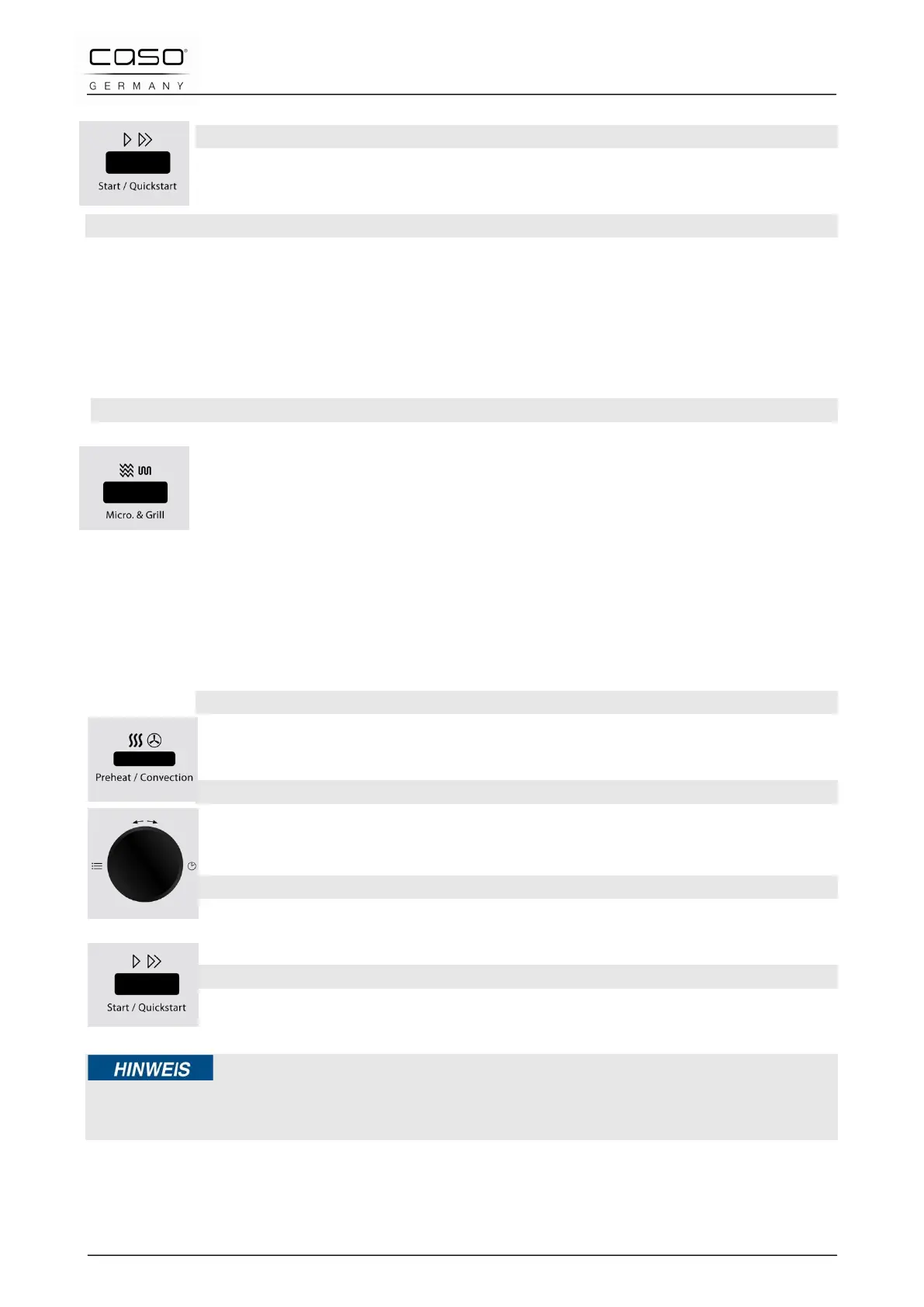Vorheizen/Heißluft entsprechend oft drücken (siehe Tabelle).