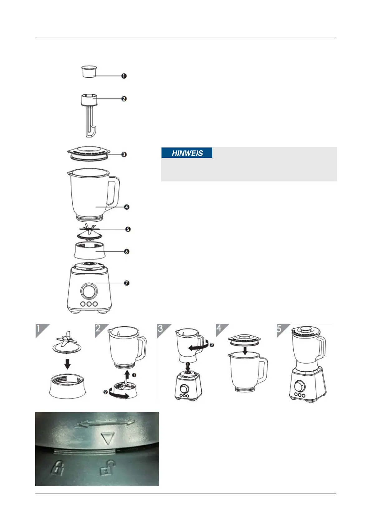 Plaats de mixbak met messenopzetstuk (zie