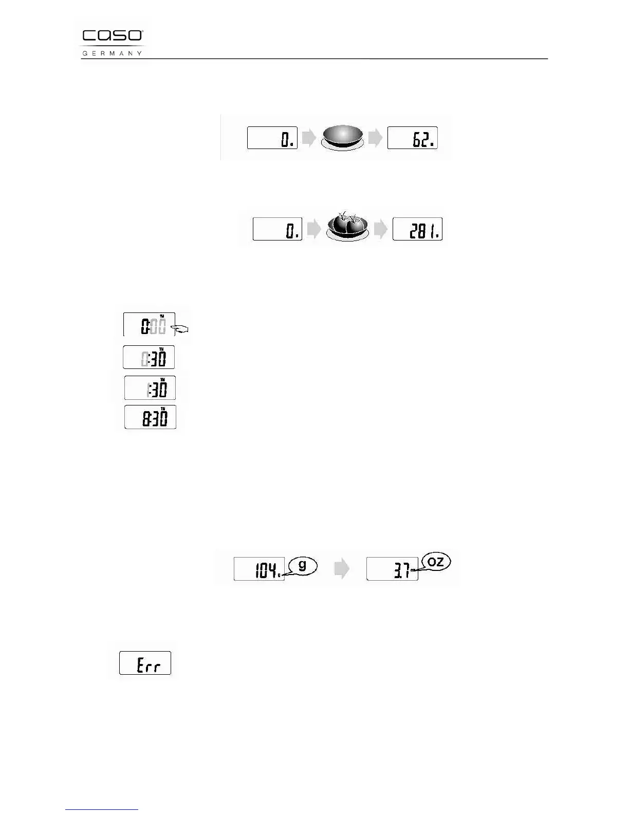 Cuando la balanza está sobrecargada se muestra “Err“ en la