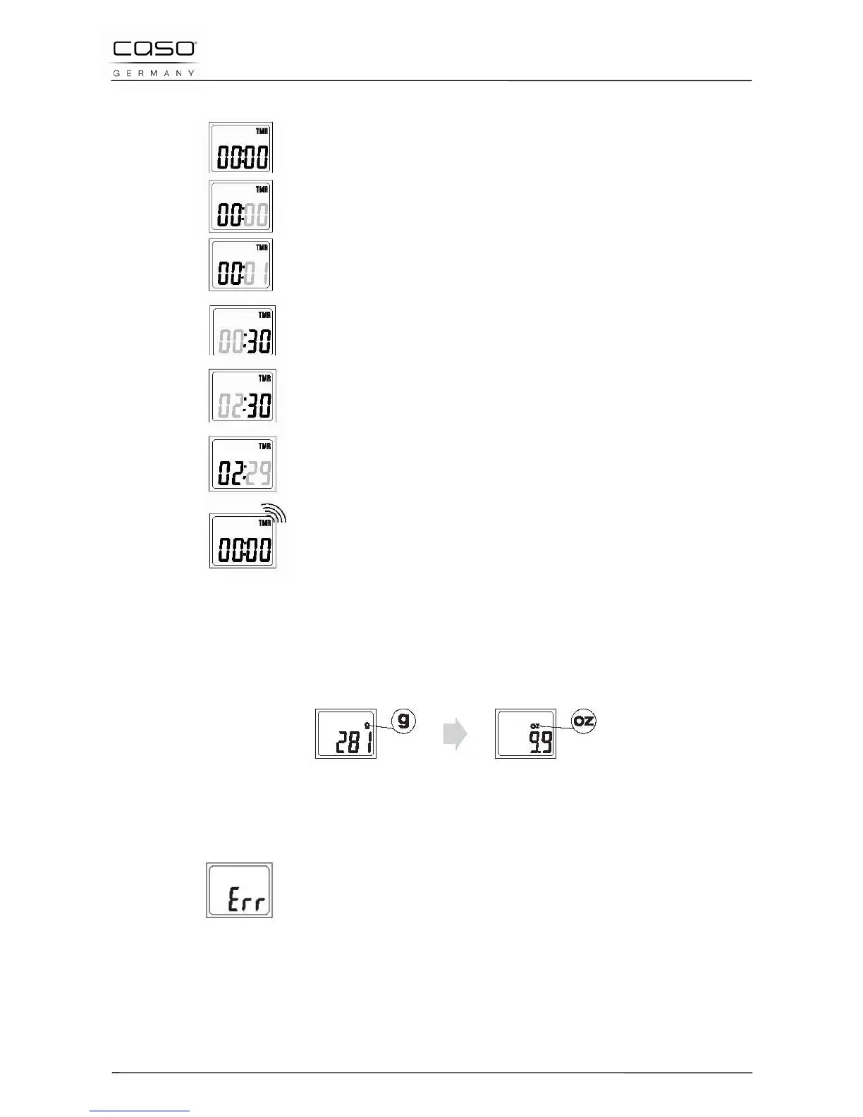 When the scale is overloaded, „Err“ will appear on the display.