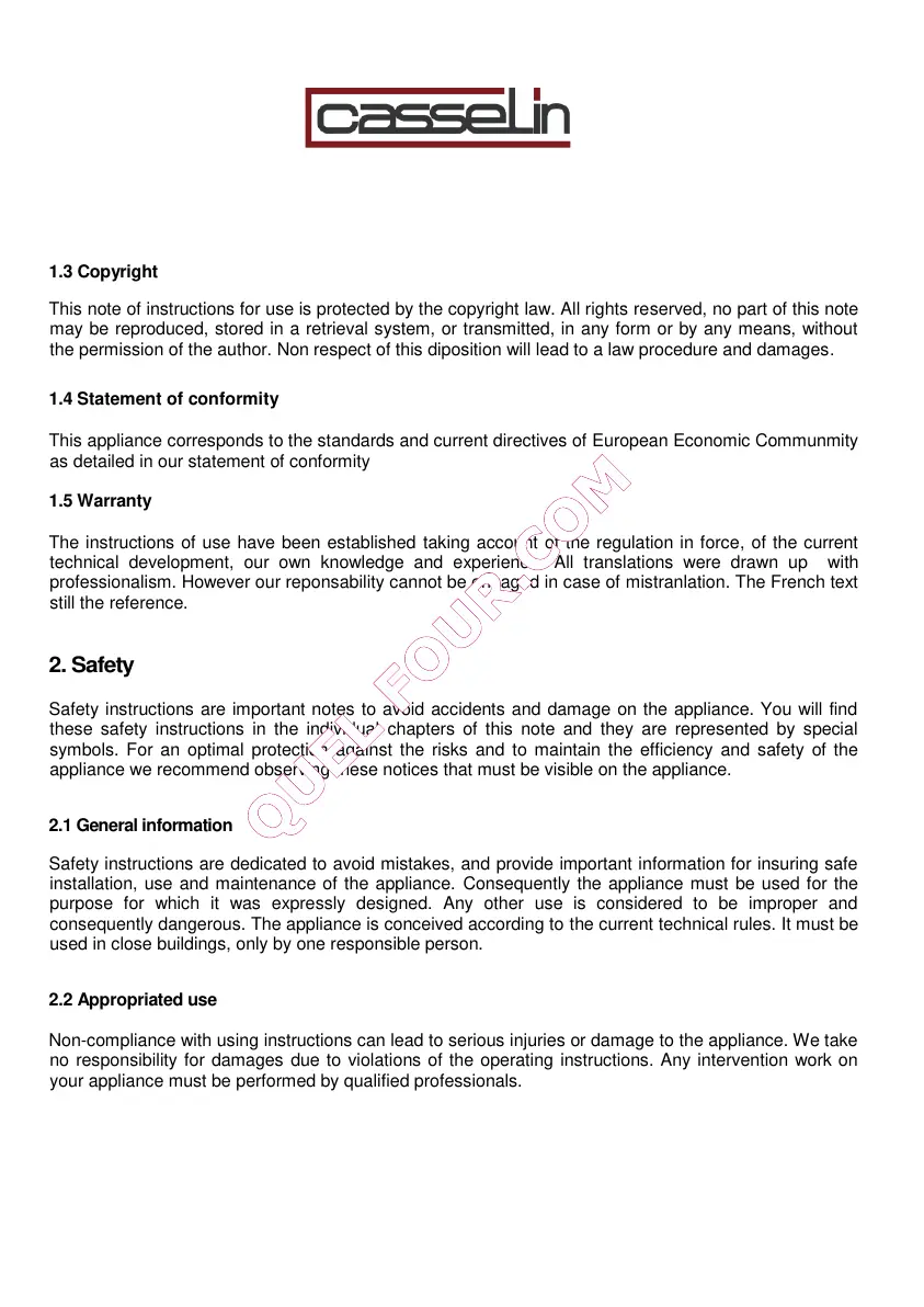 installation, use and maintenance of the appliance. Consequently the appliance must be used for the