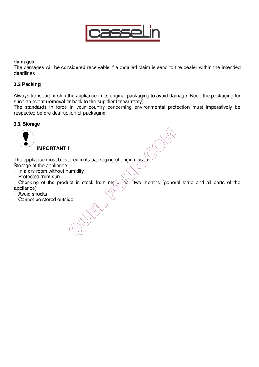 The appliance must be stored in its packaging of origin closed
