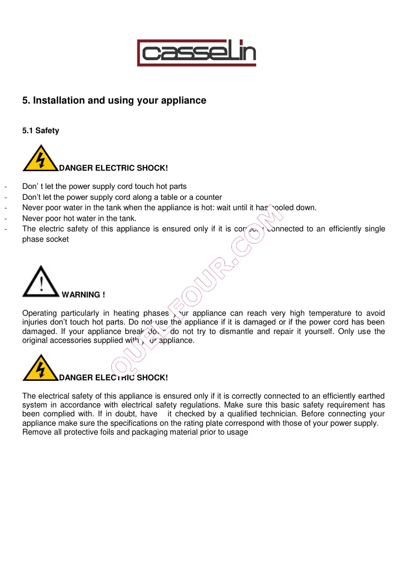 5. Installation and using your appliance