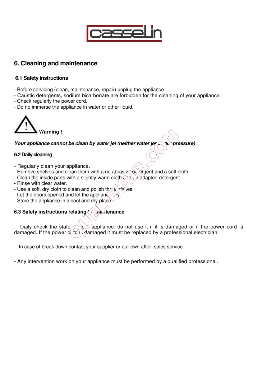 Your appliance cannot be clean by water jet (neither water jet under pressure)