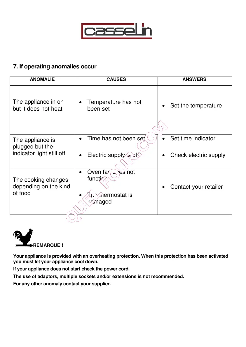 Your appliance is provided with an overheating protection. When this protection has been activated