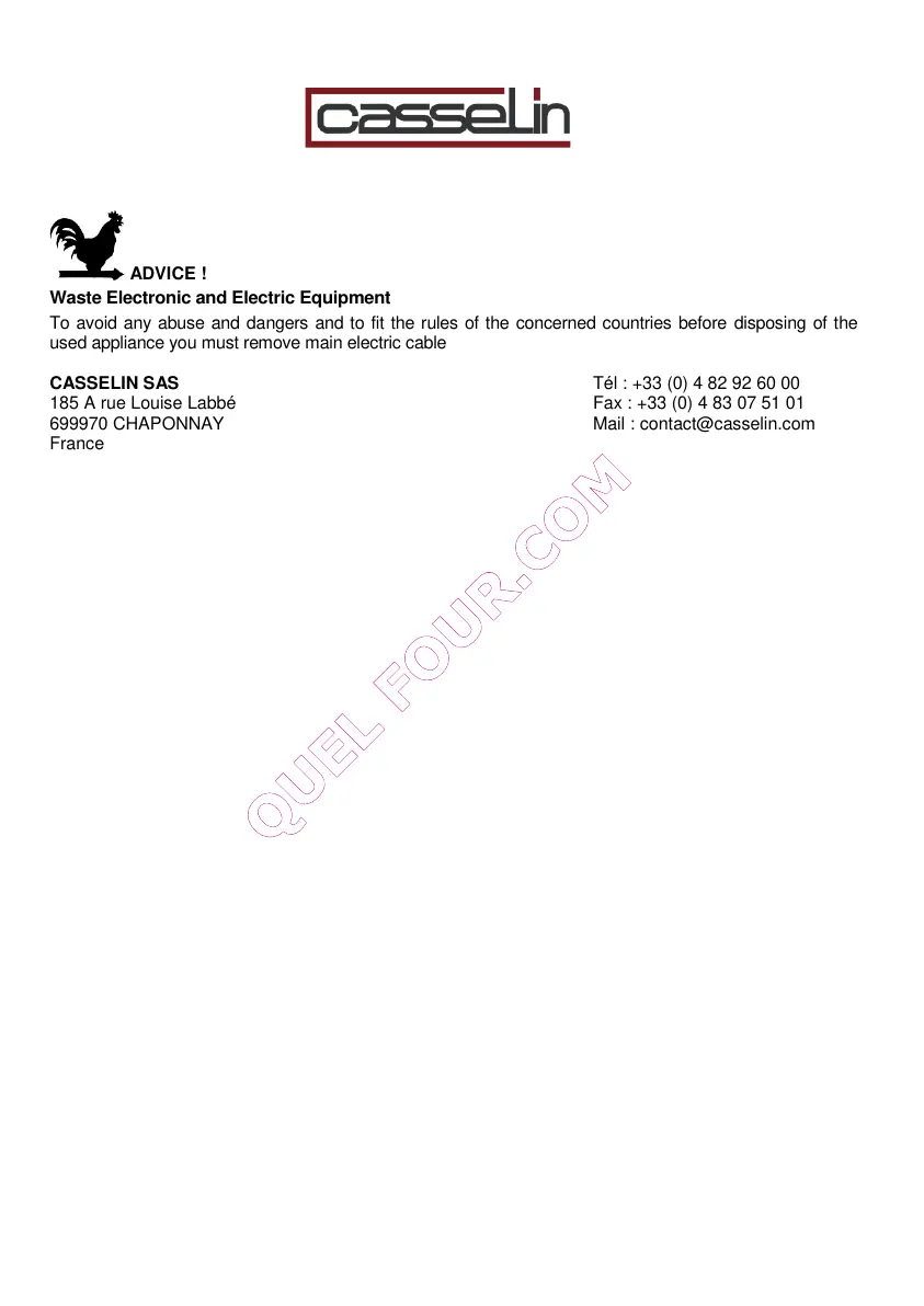 CASSELIN SAS Tél : +33 (0) 4 82 92 60 00
