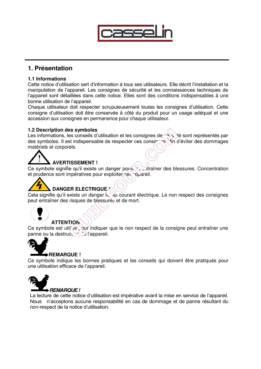La lecture de cette notice d’utilisation est impérative avant la mise en service de l’appareil.