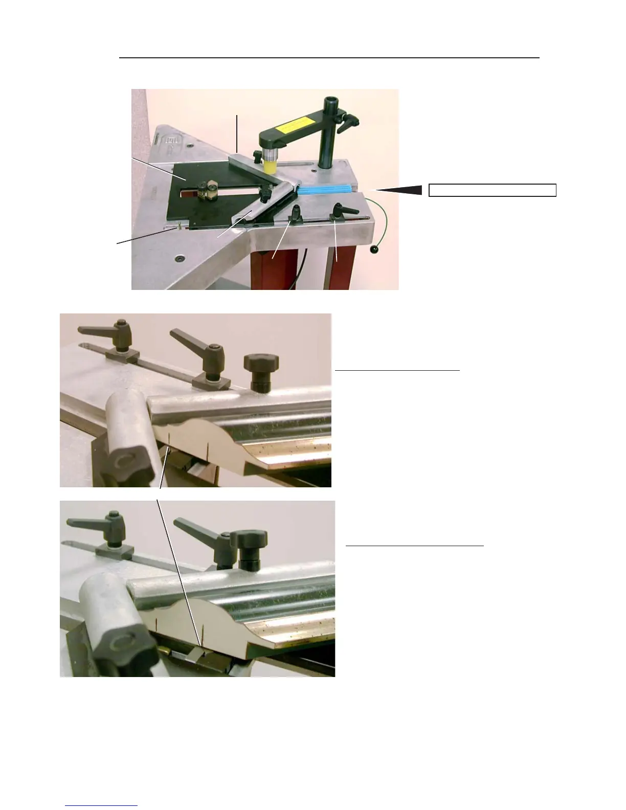 Position the right moulding against the self-adjusting backfence. Move the sliding table so that