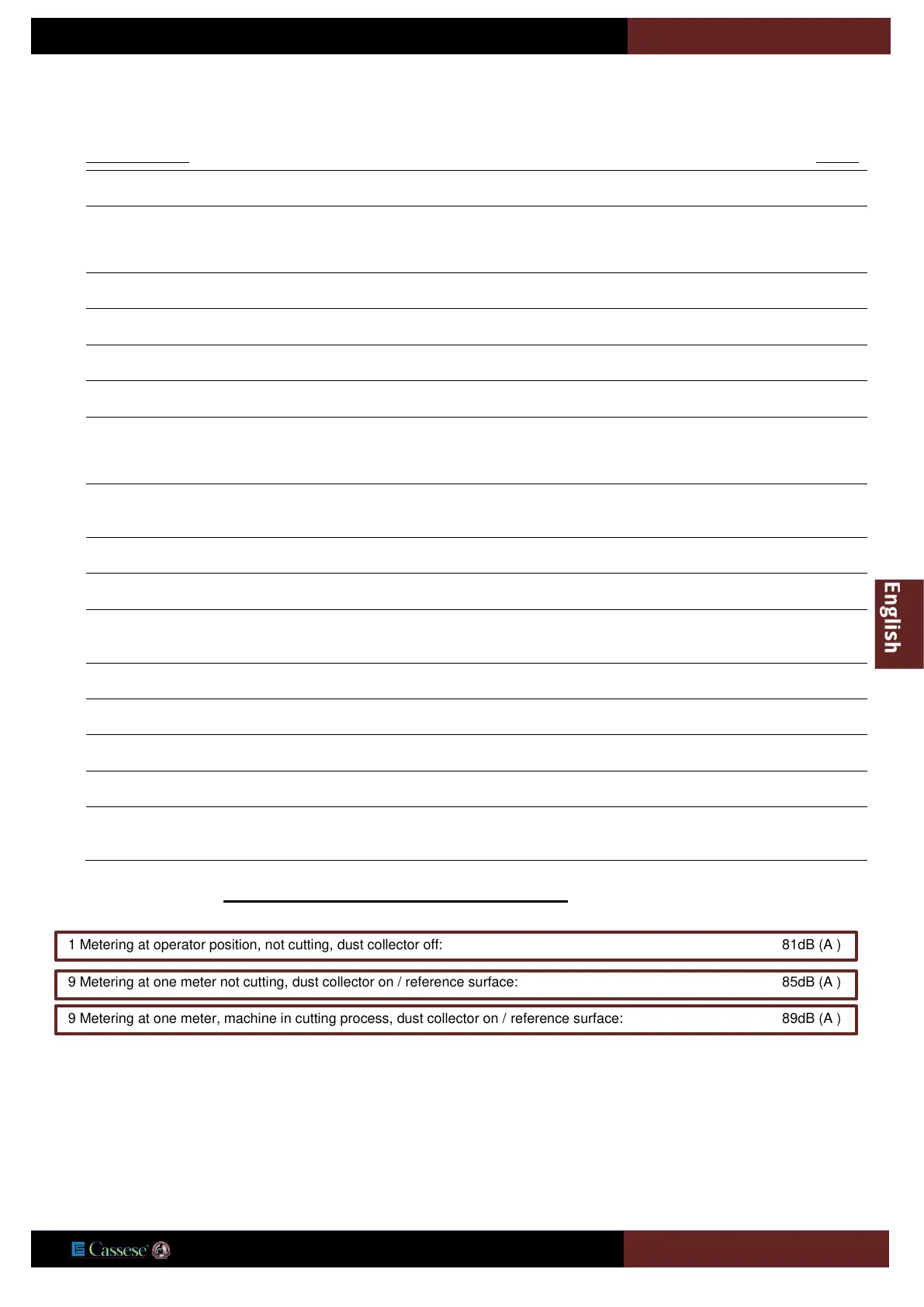 9 Metering at one meter, machine in cutting process, dust collector on / reference surface: 89dB (A )
