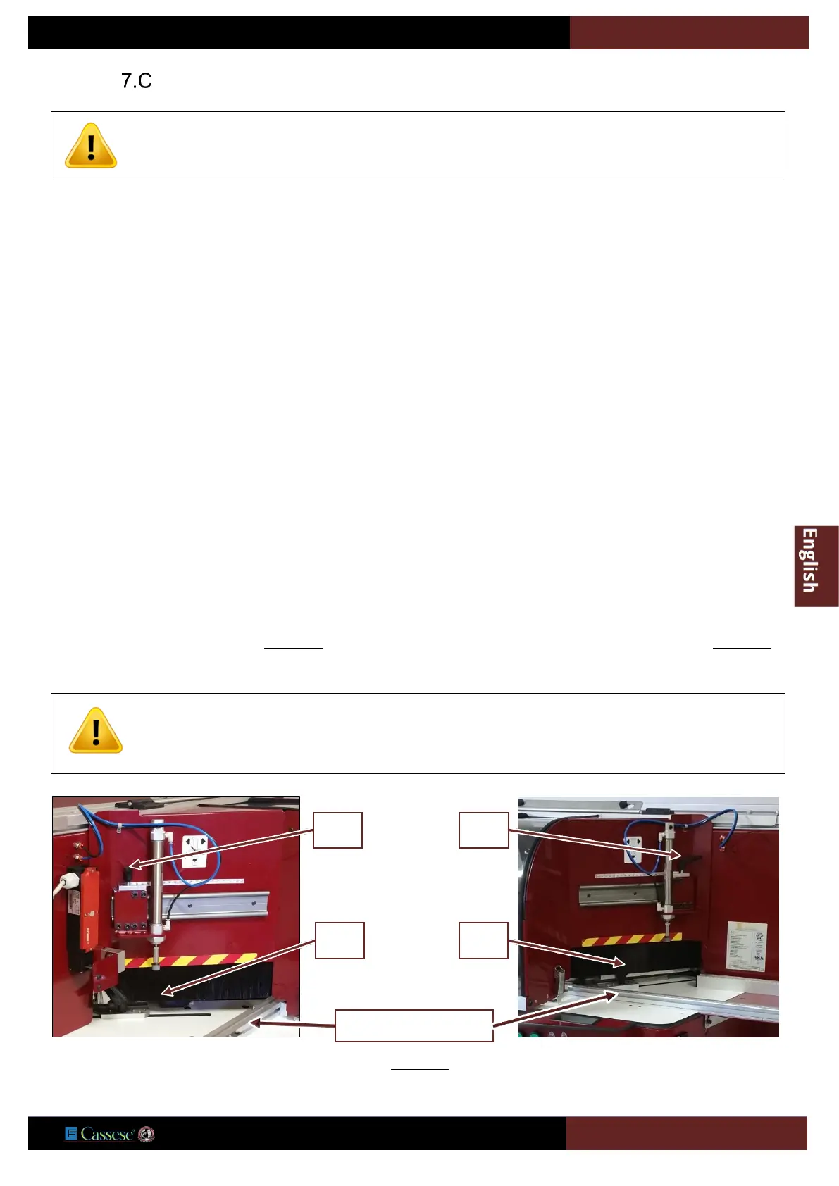B & B’, C & C’. In order to guarantee a high-quality cut, and the essential safety conditions, check that the