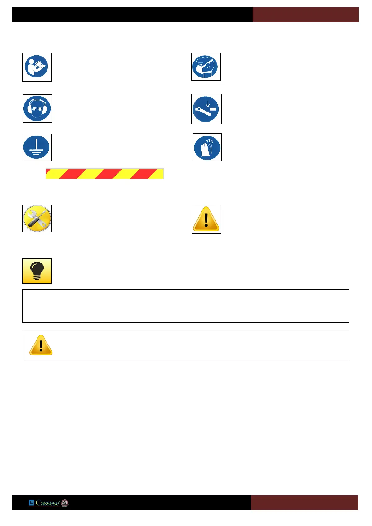 Ne pas engager les mains dans les zones délimitées par les bandes Jaunes/rouges et au delas, risque de coupures graves.