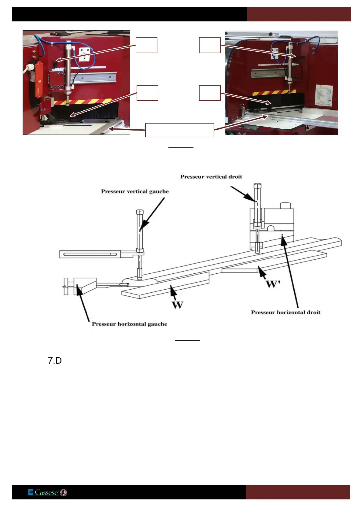 -Le maintien du bouton 6 provoque les serrages des presseurs gauches et droits. Sans relâcher le bouton 6 et avec le maintien du