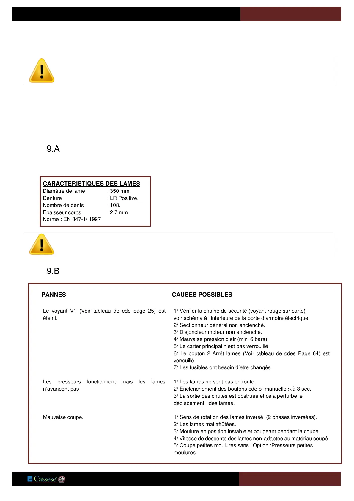 4/ Vitesse de descente des lames non-adaptée au matériau coupé.