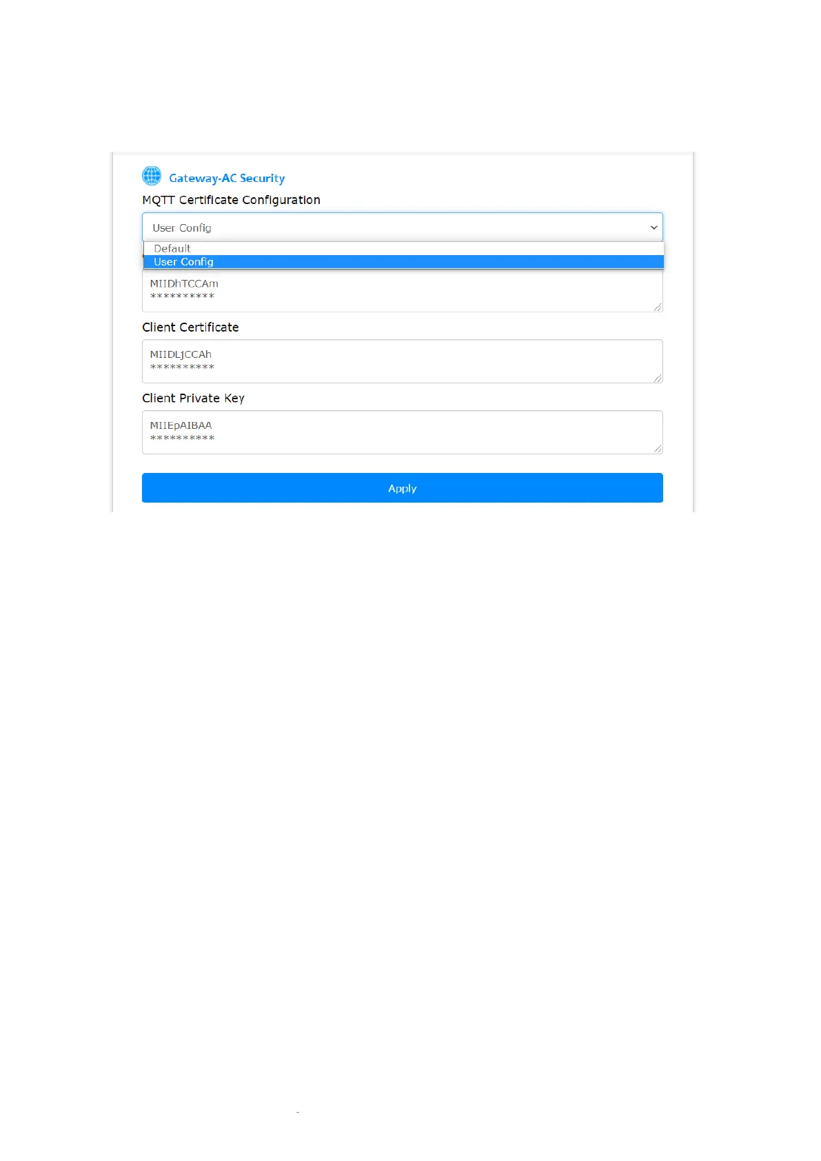 certificate, and client private key should be provided on the gateway side.