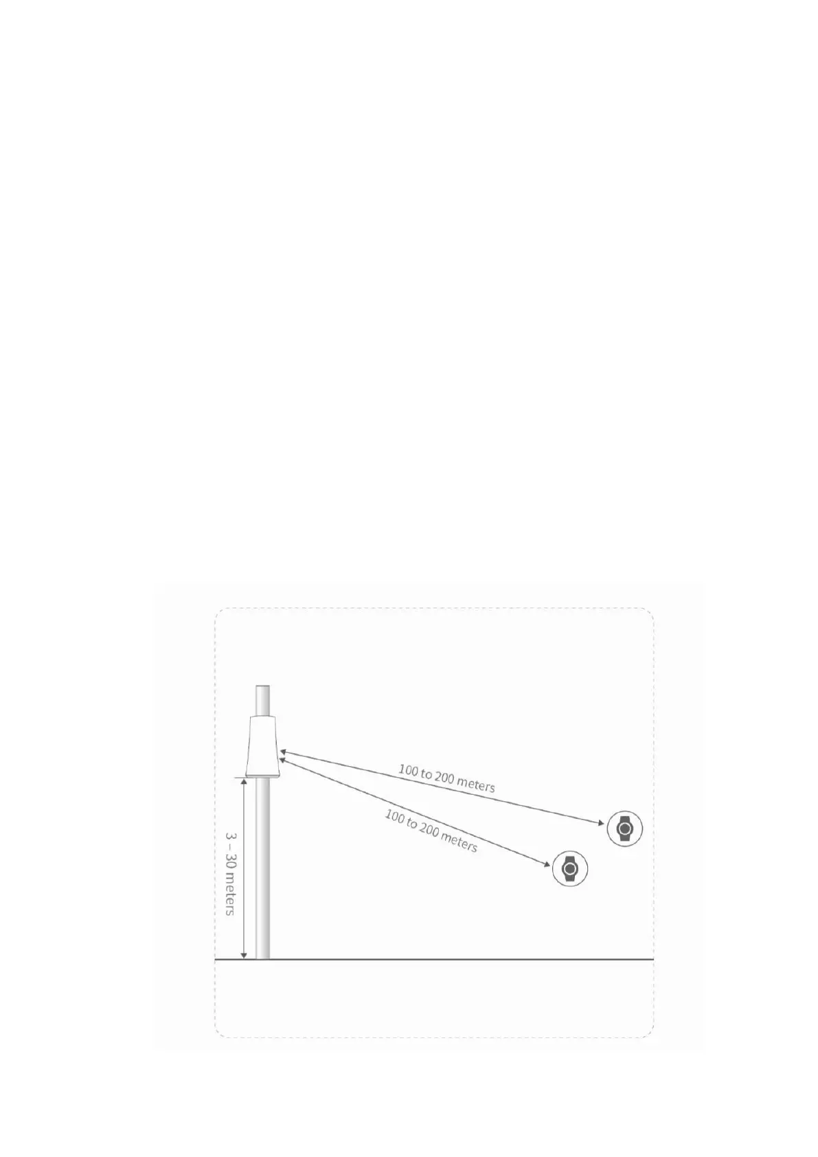 Installation height is recommended between 10 and 100 feet (3 and 30 meters)