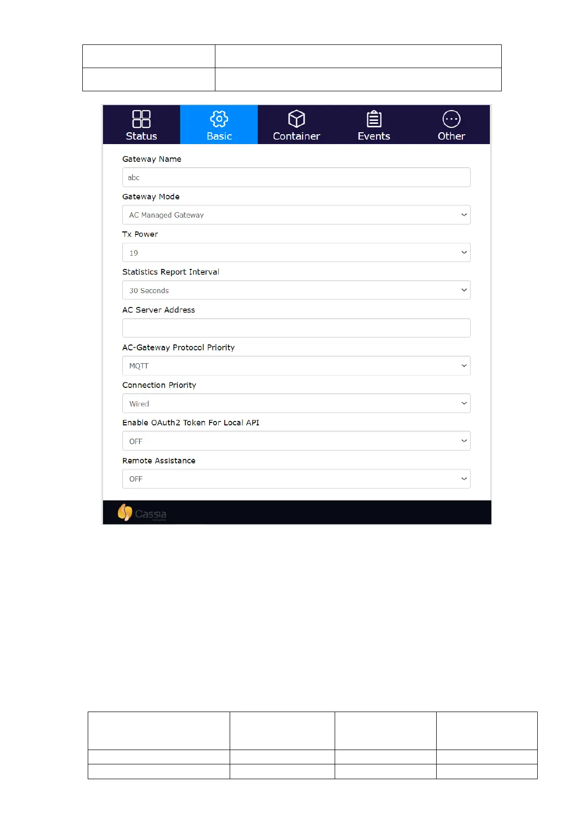 Cassia gateway configuration page -- Basic