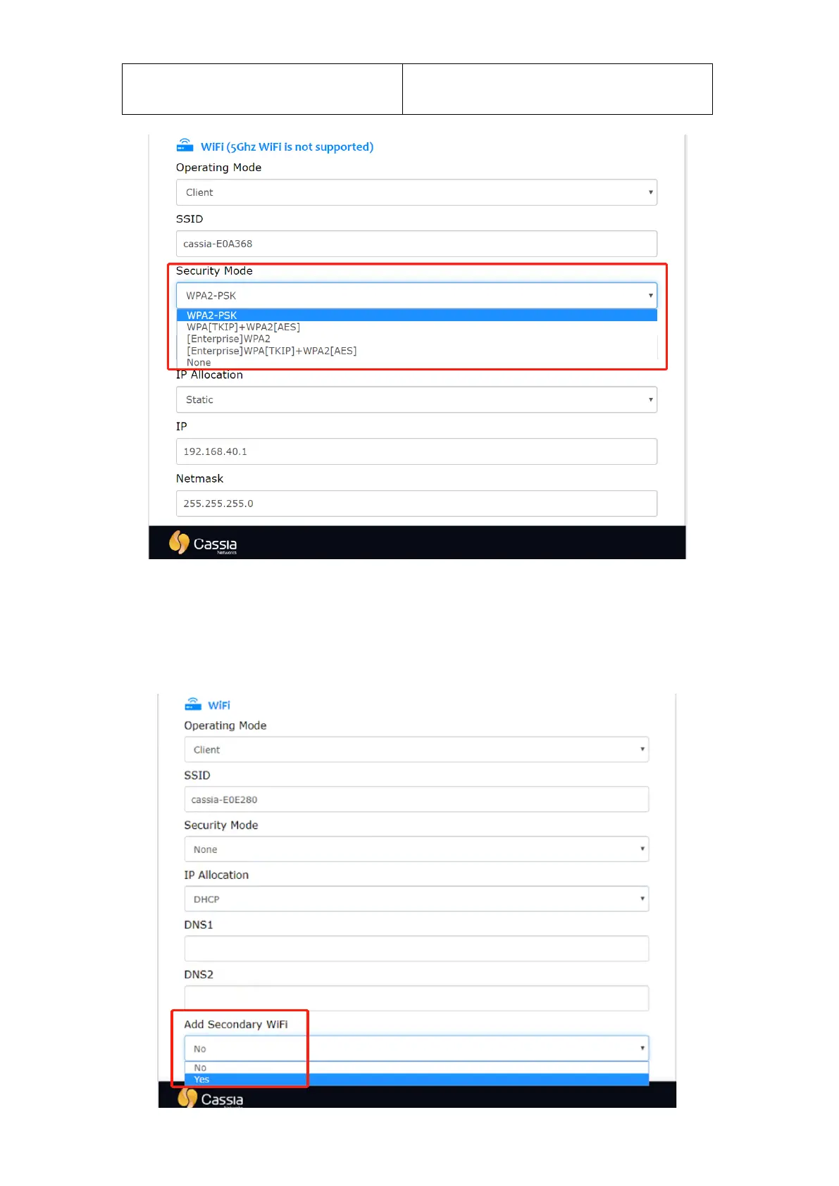 Cassia gateway configuration page – Wi-Fi Security Mode